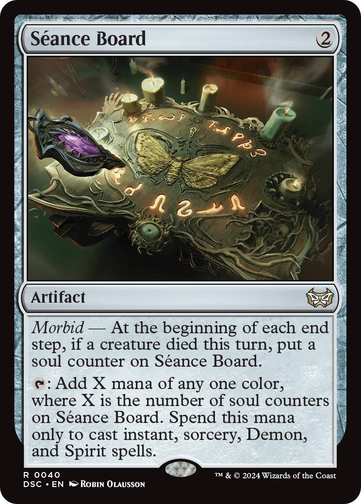 T: Add X mana of any one color, where X is the number of soul counters on Séance Board. Spend this mana only to cast instant, sorcery, Demon, and Spirit spells.